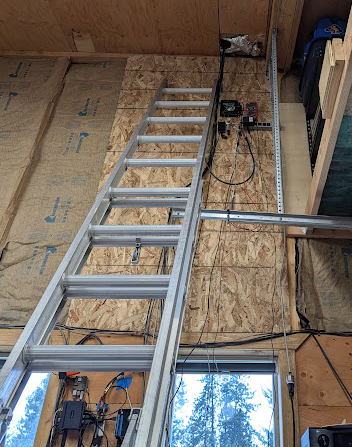 Dan was not convinced I would need a ladder latch at the top of the mezzanine floor, but something in the back of my head said yeah. I'm glad he built one for me....
