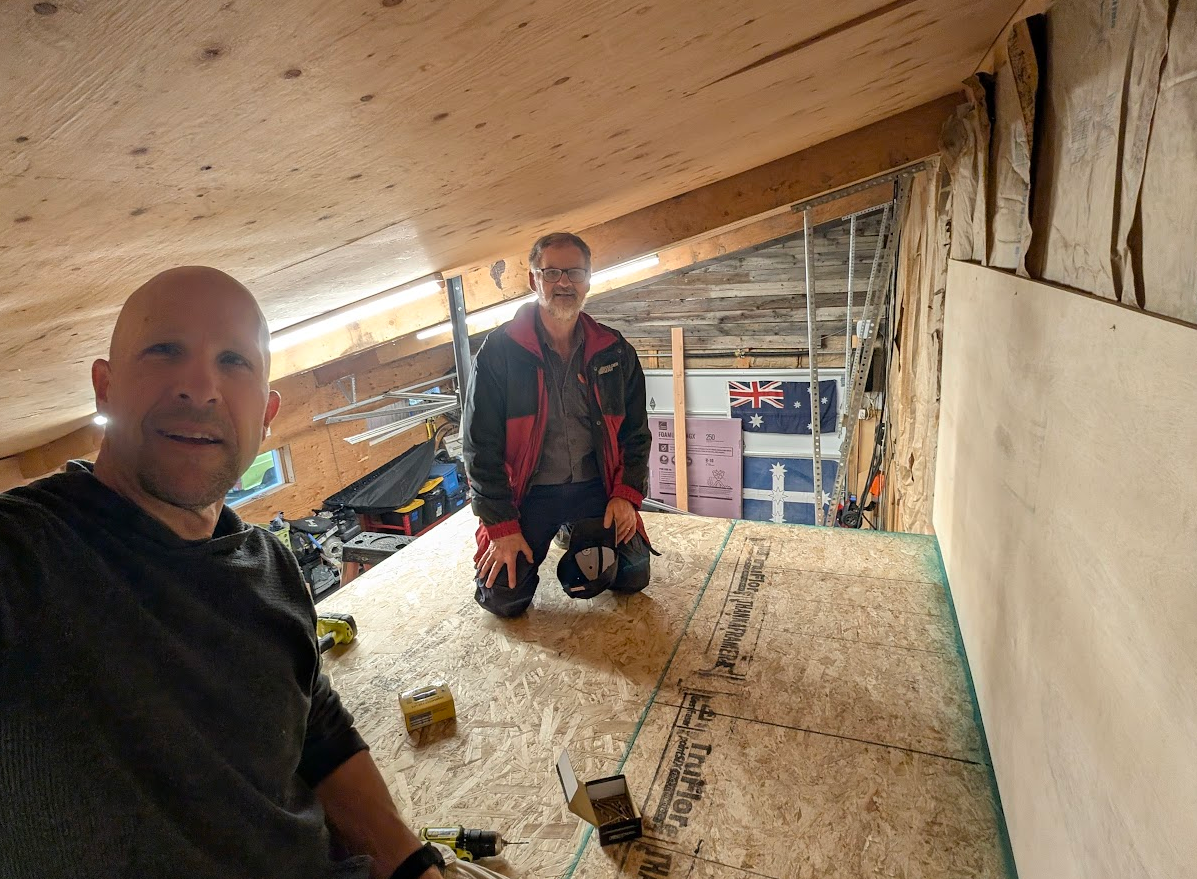 Threw one sheet of flooring up to make working on the last few bits a bit easier.